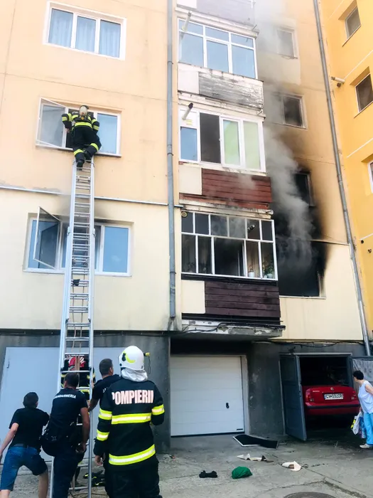 Incendiu într-un bloc din Sfântu Gheorghe. Toți locatarii au fost evacuați. Două persoane au ajuns la spital
