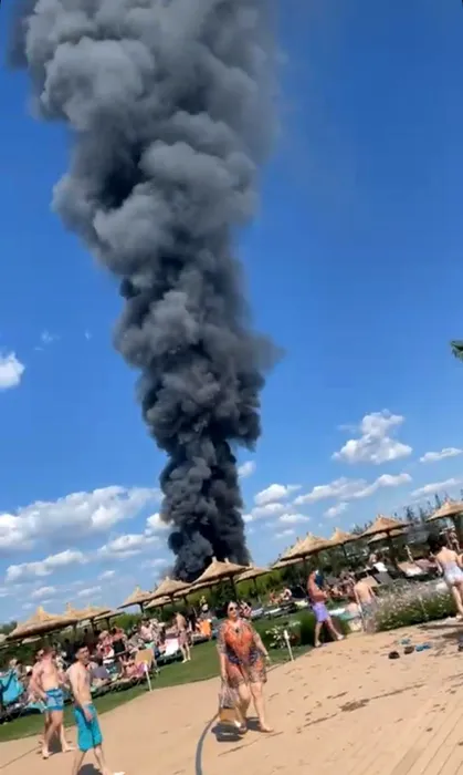 VIDEO | Incendiu la Complexul Therme din Balotești. Pompierii acționează cu 12 autospeciale de stingere au apă și spumă