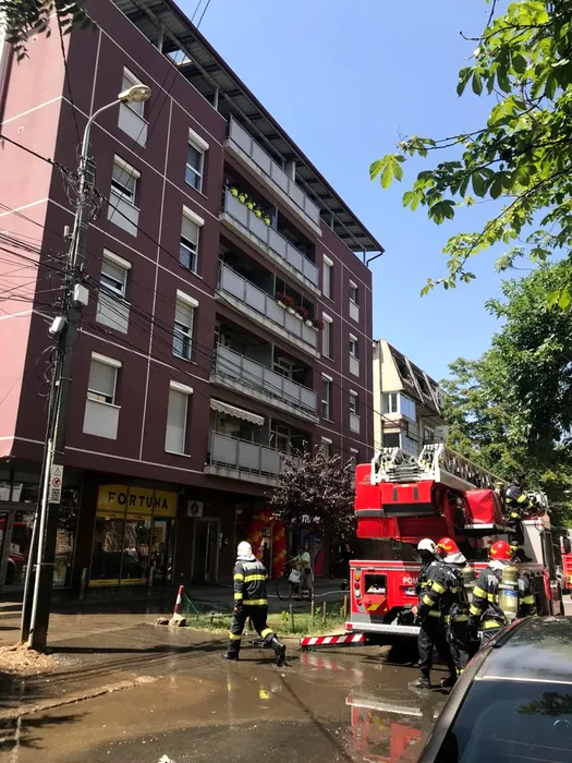 Aproape 30 de locatari ai unui bloc din Timișoara au fost evacuați, după un incendiu izbucnit la mansardă (FOTO)