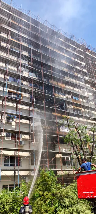 UPDATE – Incendiu la un bloc în curs de reabilitare termică din Rahova. ISU-BIF: Aproape 40 de locatari au fost evacuați, iar doi pompieri au ajuns la spital (FOTO-VIDEO)