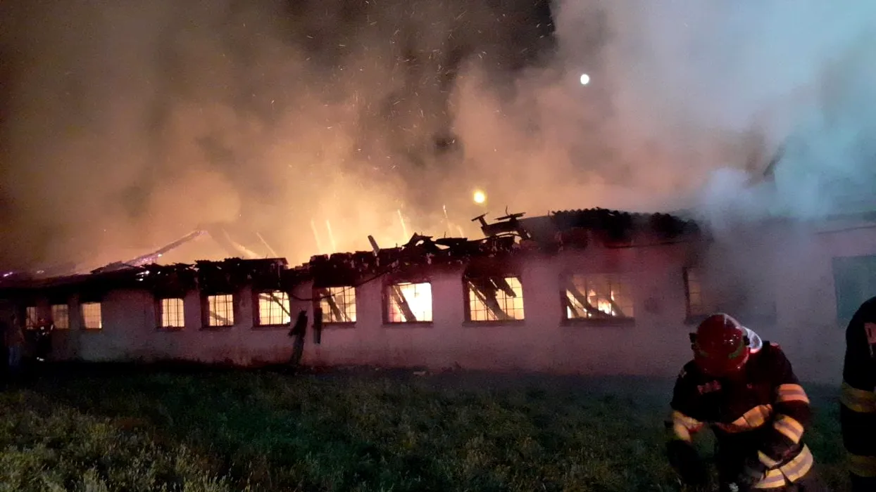 FOTO | Incendiu la un depozit de mobilier din județul Timiș. Aproape 30 de pompieri se luptă cu flăcările, care au cuprins o suprafață de aproximativ 900 de metri pătrați