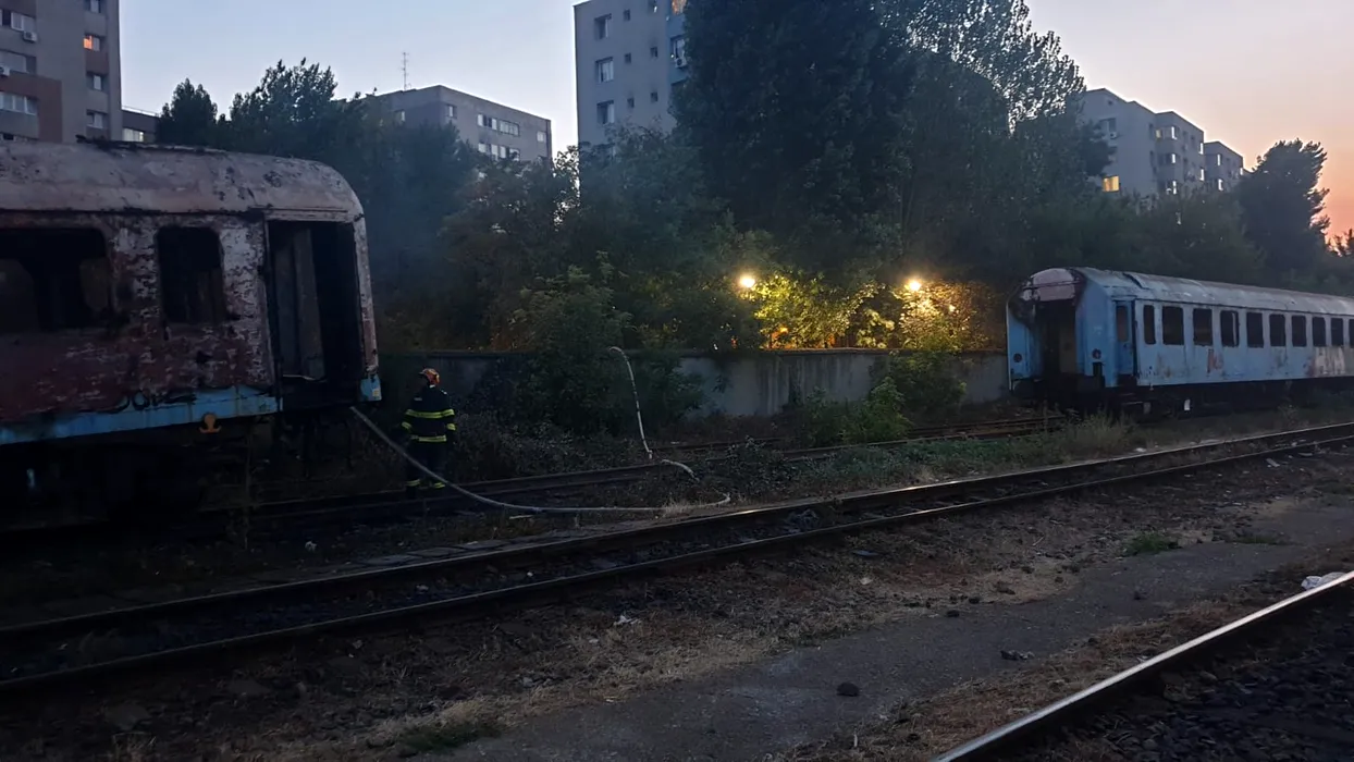Incendiu lângă Gara Basarab, la un vagon de tren dezafectat din zona Calea Giulești (FOTO-VIDEO)