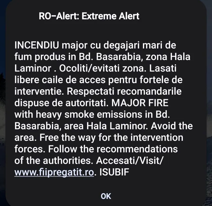 Incendiu lângă Hala Laminor. 12 autospeciale intervin de urgență. A fost emis un mesaj RO-ALERT