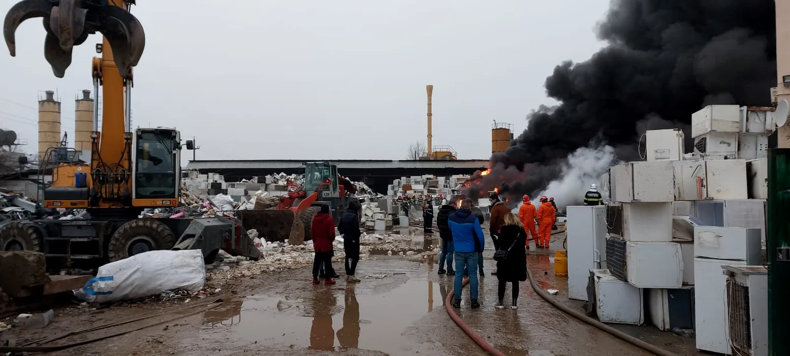 Incendiu puternic la un depozit de materiale reciclabile din Popești-Leordeni: Au ars 3.000 de metri pătrați. Garda de Mediu: Sunt depăşiri mari la monoxid şi dioxid de carbon