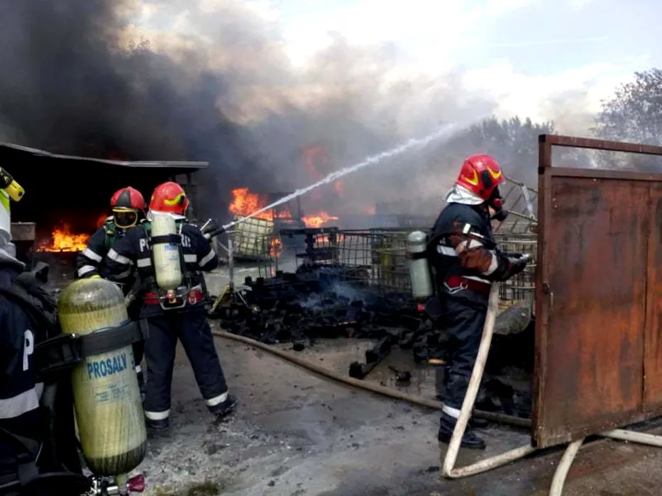 Incendiu masiv la un depozit cu materiale de construcții din Vâlcea: O femeie a fost rănită grav – FOTO / VIDEO