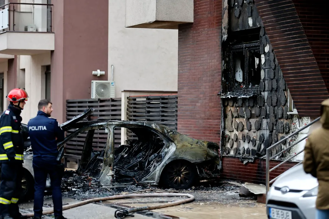 GALERIE FOTO: UPDATE: FOTO-VIDEO – Incendiu puternic într-un cartier exclusivist al Capitalei. Un Mercedes a luat foc, iar flăcările s-au extins la o altă mașină și la un bloc / Ultima revizie a fost făcută acum trei zile / Mașina a fost cumpărată de la finul lui Remus Truică în august