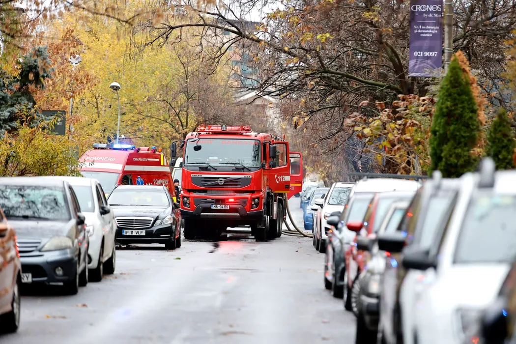 VIDEO - Incendiu puternic într-un cartier exclusivist al Capitalei. O mașină a luat foc, iar flăcările s-au extins și la blocul lângă care era parcată / Șapte persoane au fost evacuate
