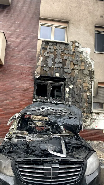GALERIE FOTO: UPDATE: FOTO-VIDEO – Incendiu puternic într-un cartier exclusivist al Capitalei. Un Mercedes a luat foc, iar flăcările s-au extins la o altă mașină și la un bloc / Ultima revizie a fost făcută acum trei zile / Mașina a fost cumpărată de la finul lui Remus Truică în august