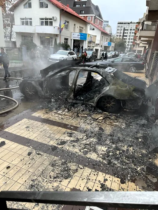 GALERIE FOTO: UPDATE: FOTO-VIDEO – Incendiu puternic într-un cartier exclusivist al Capitalei. Un Mercedes a luat foc, iar flăcările s-au extins la o altă mașină și la un bloc / Ultima revizie a fost făcută acum trei zile / Mașina a fost cumpărată de la finul lui Remus Truică în august