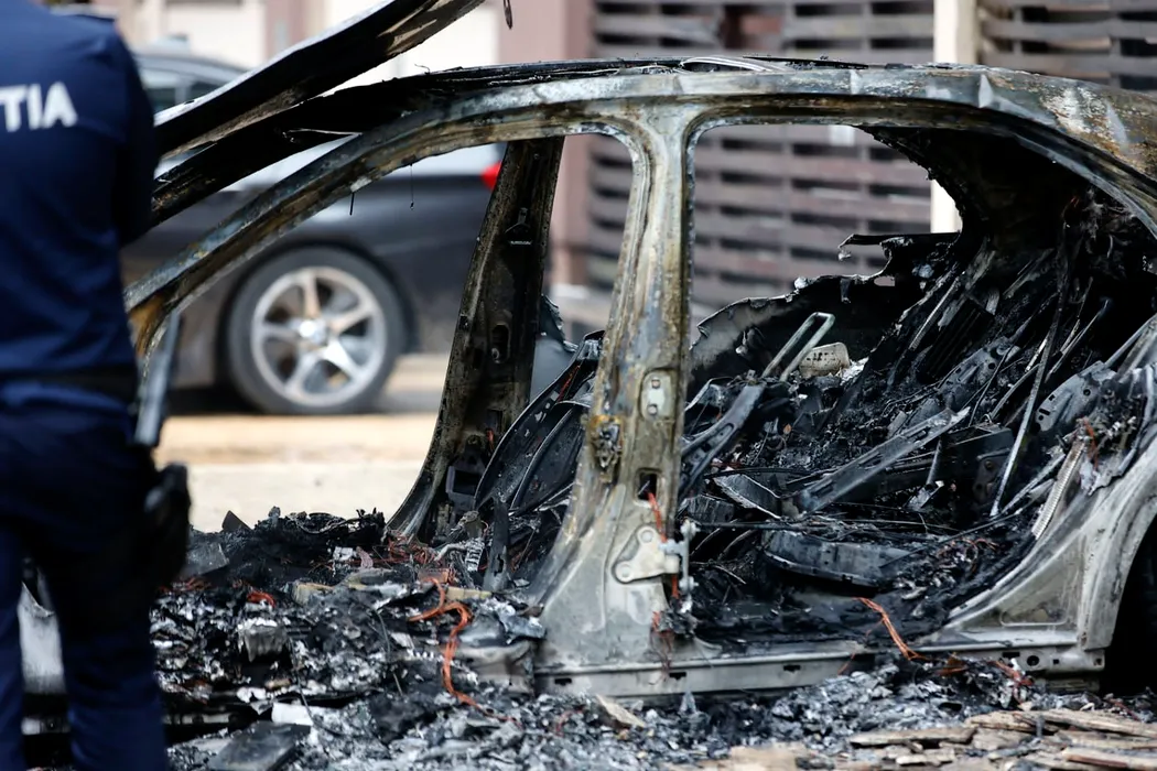 GALERIE FOTO: UPDATE: FOTO-VIDEO – Incendiu puternic într-un cartier exclusivist al Capitalei. Un Mercedes a luat foc, iar flăcările s-au extins la o altă mașină și la un bloc / Ultima revizie a fost făcută acum trei zile / Mașina a fost cumpărată de la finul lui Remus Truică în august