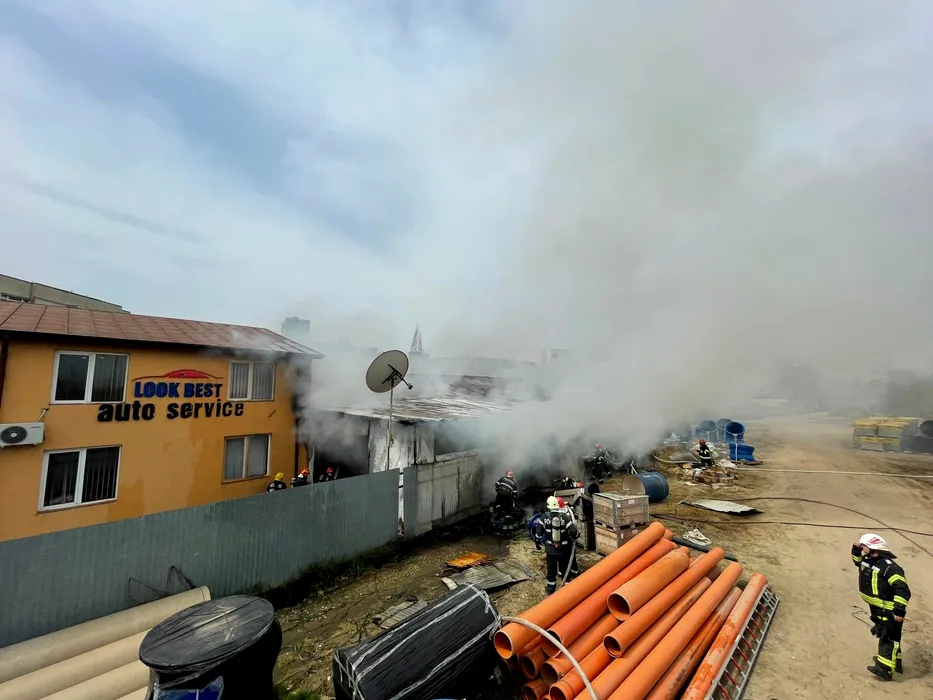 Incendiu puternic în București. Șase autospeciale intervin la un service auto din Sectorul 2 (Galerie FOTO)
