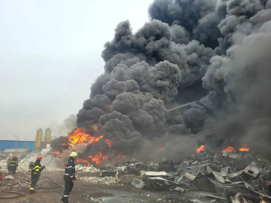 Incendiu puternic în Buzău, la un depozit de materiale reciclabile. Din cauza fumului dens, a fost trimis un mesaj RO-ALERT / FOTO