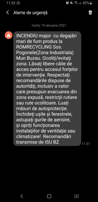 Incendiu puternic în Buzău, la un depozit de materiale reciclabile. Din cauza fumului dens, a fost trimis un mesaj RO-ALERT / FOTO