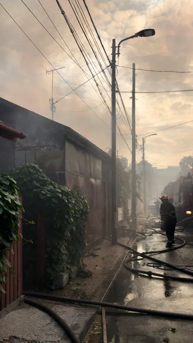 Incendiu puternic în Capitală. Două case au fost cuprinse de flăcări. FOTO