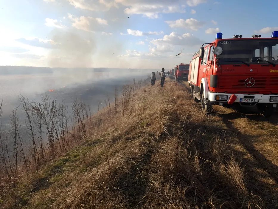 Incendiu puternic în Olt. Au ars 70 de hectare de vegetație uscată