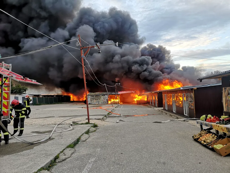VIDEO | Incendiu puternic într-o piață din Braşov. Locuitorii din zonă au primit mesaj de avertizare prin RO-Alert