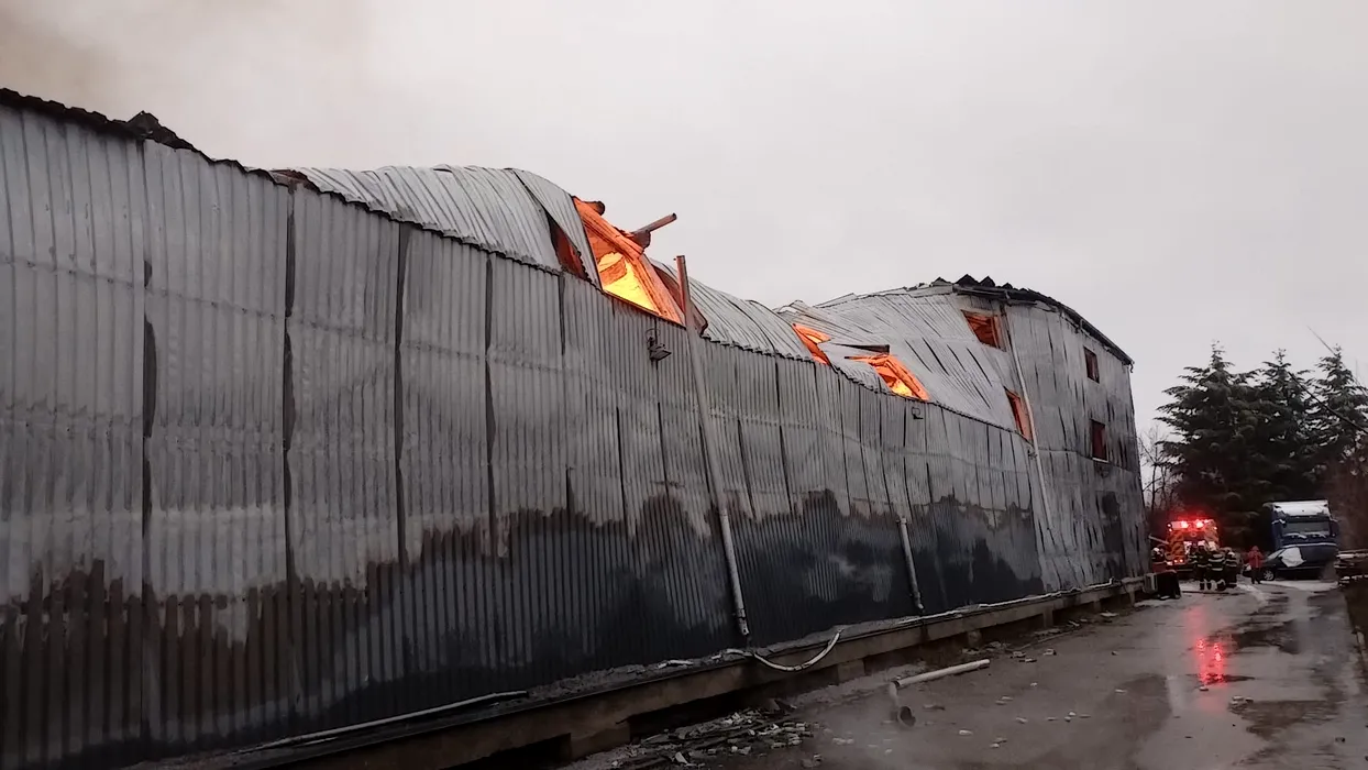 FOTO-VIDEO | Incendiu puternic, izbucnit la un depozit din Voluntari. A fost emis mesaj RO-ALERT, în zonă fiind degajări mari de fum