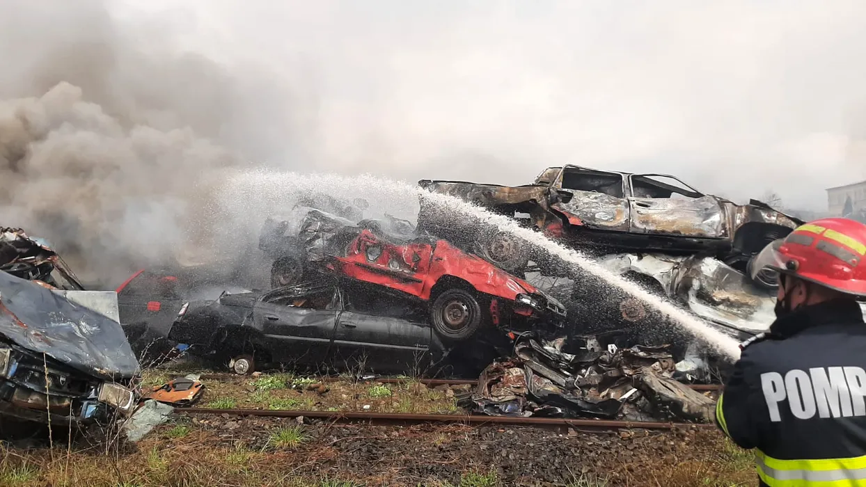 Incendiu puternic la un centru de colectare a fierului vechi! Garda de Mediu a fost alertată imediat – FOTO/VIDEO