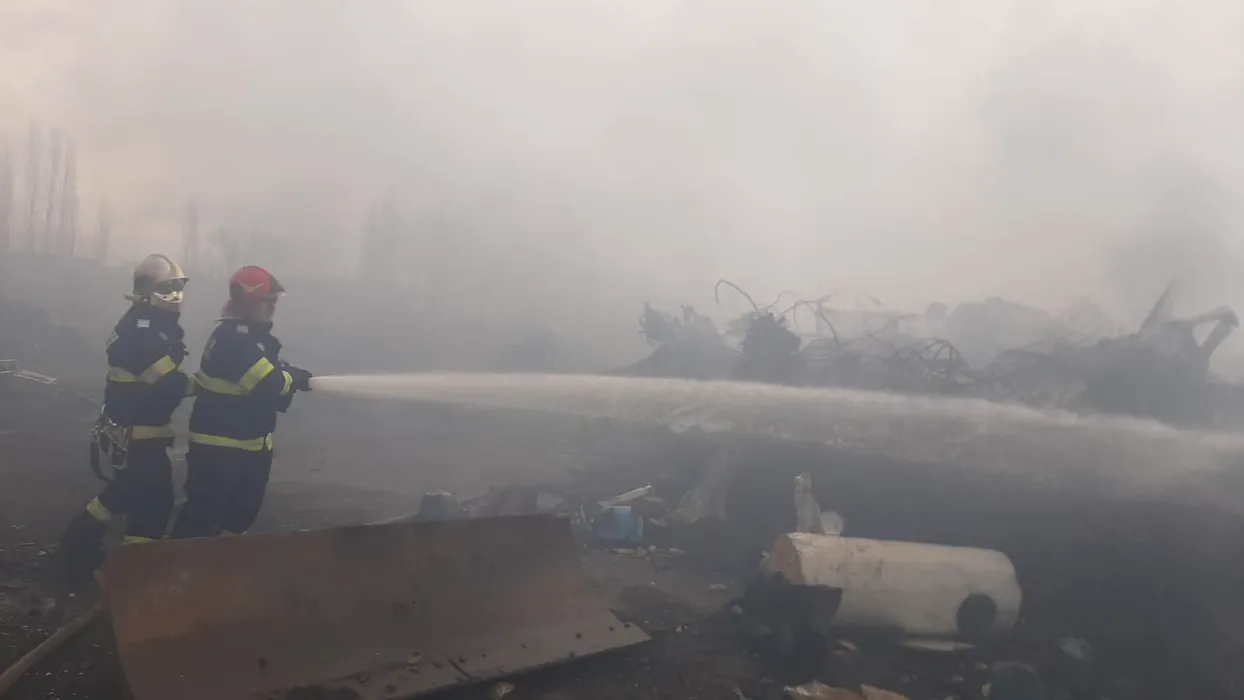Incendiu puternic la un centru de colectare a fierului vechi! Garda de Mediu a fost alertată imediat – FOTO/VIDEO