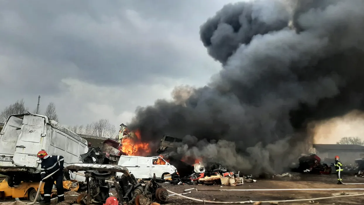 Incendiu puternic la un centru de colectare a fierului vechi! Garda de Mediu a fost alertată imediat – FOTO/VIDEO