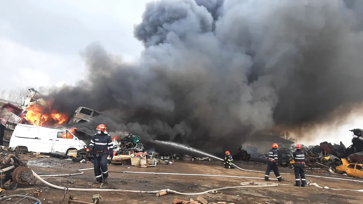 Incendiu puternic la un centru de colectare a fierului vechi! Garda de Mediu a fost alertată imediat – FOTO/VIDEO