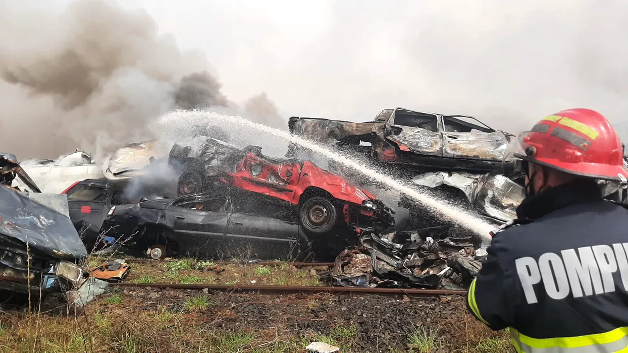 Incendiu puternic la un centru de colectare a fierului vechi! Garda de Mediu a fost alertată imediat – FOTO/VIDEO