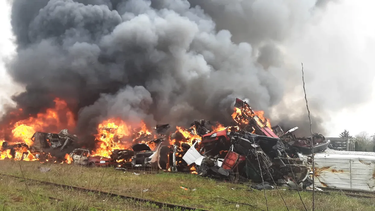 Incendiu puternic la un centru de colectare a fierului vechi! Garda de Mediu a fost alertată imediat – FOTO/VIDEO