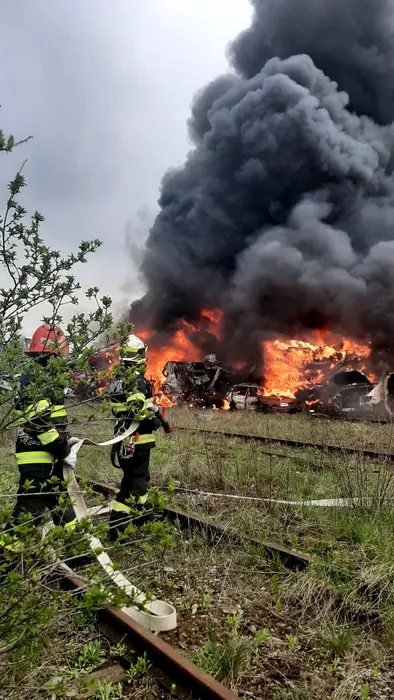 Incendiu puternic la un centru de colectare a fierului vechi! Garda de Mediu a fost alertată imediat – FOTO/VIDEO