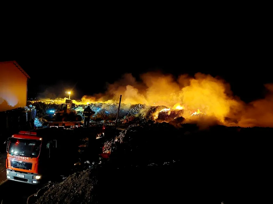 Incendiu puternic la un depozit de deșeuri reciclabile din județul Tulcea | FOTO, VIDEO