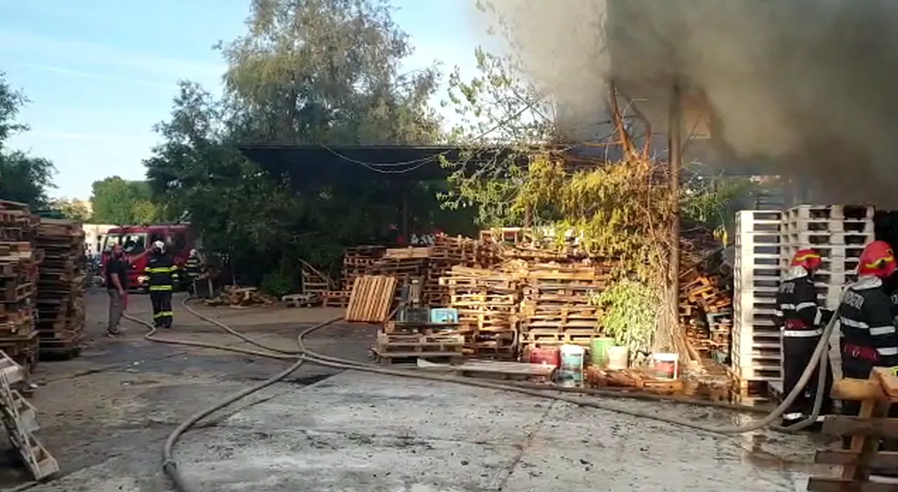 Incendiu puternic la un depozit de paleți din sectorul 2. Pompierii acționează cu 7 autospeciale (VIDEO)