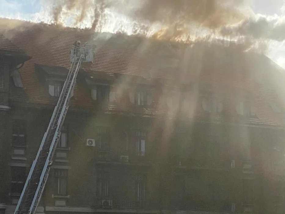 Incendiu puternic la un hotel istoric din Capitală. Zece persoane au fost evacuate (VIDEO & FOTO EXCLUSIVE)