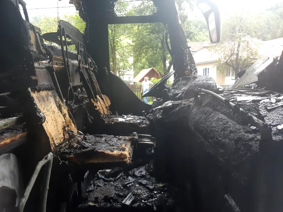 INCENDIU. Un autocar cu 46 de persoane la bord a luat foc pe DN1, în Azuga | Traficul în zonă a fost reluat