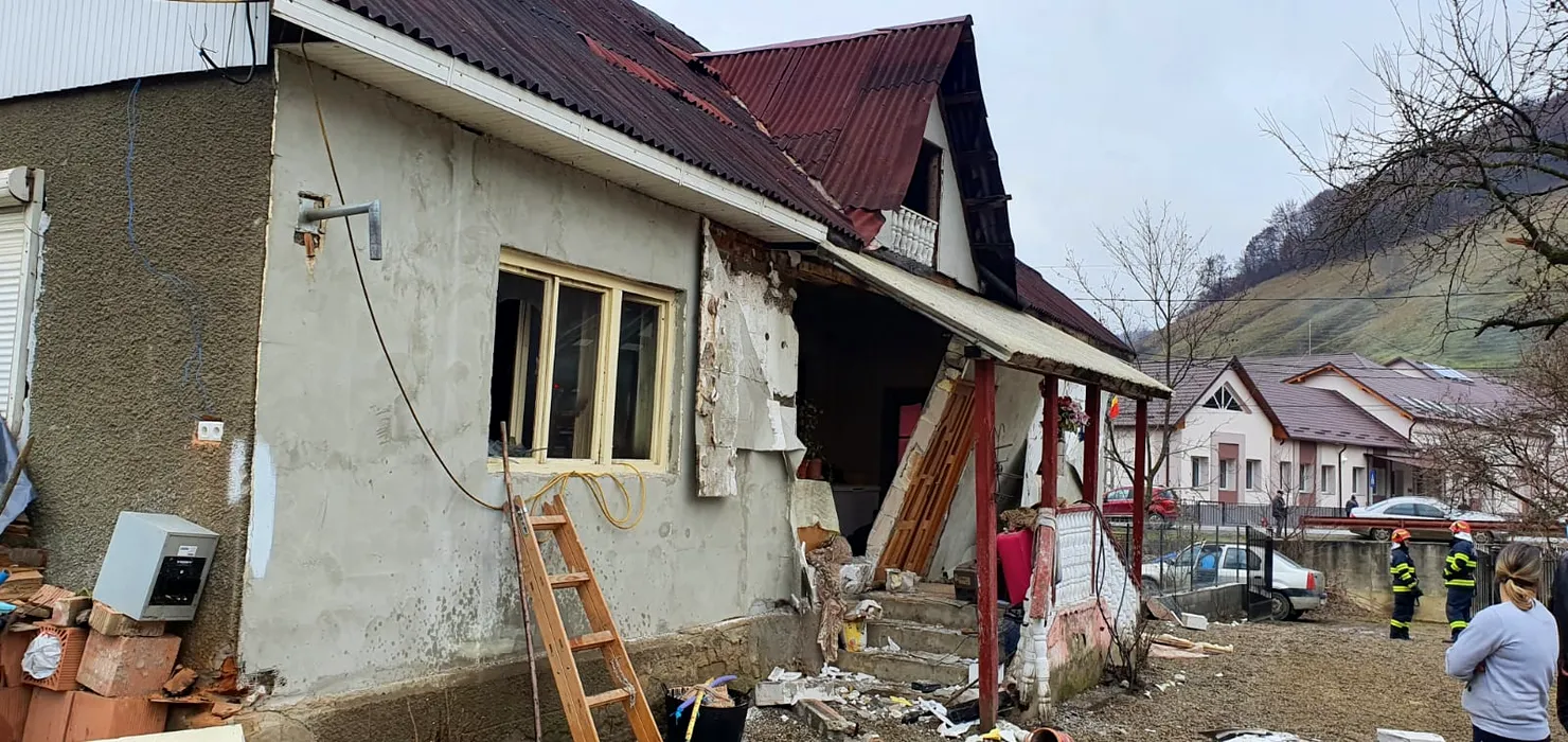Incendiu urmat de o explozie, la o locuință din Bistrița-Năsăud. Un bărbat a suferit răni la nivelul feței