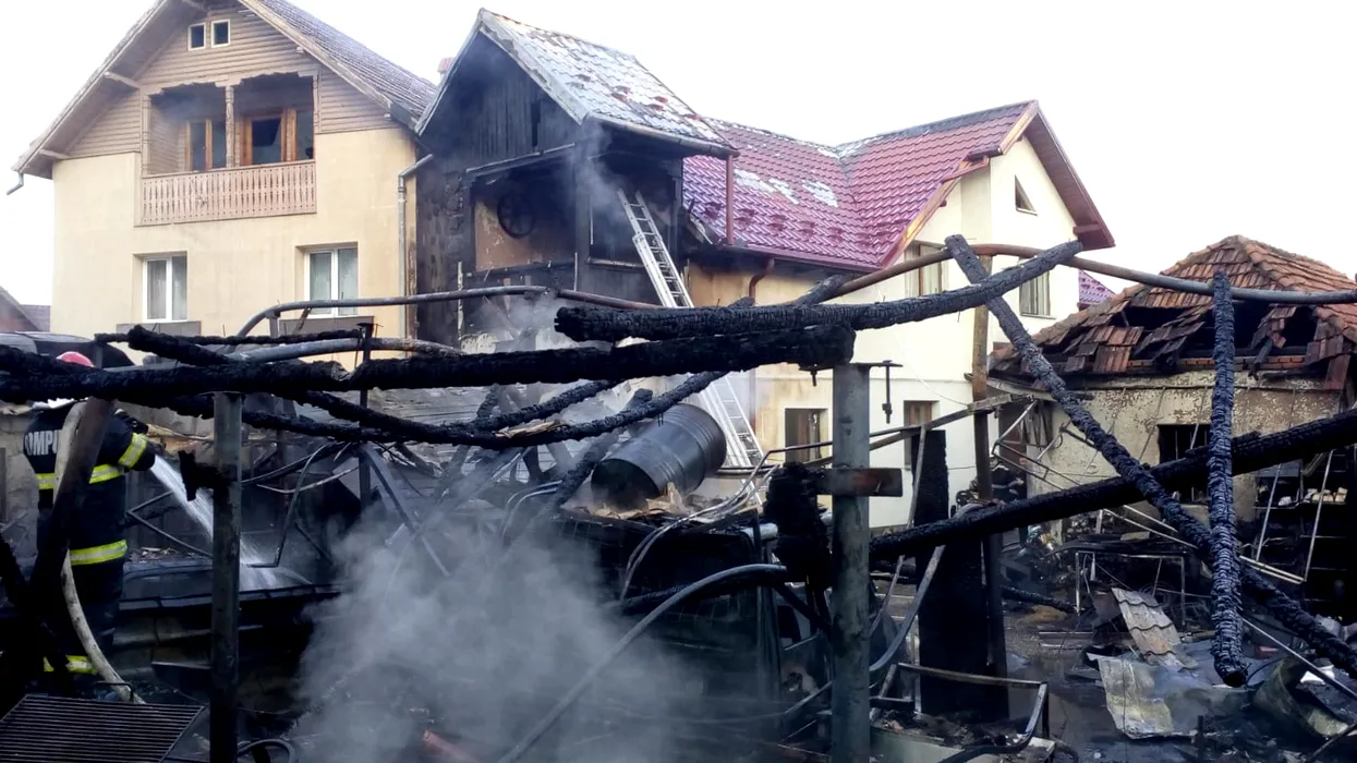 Incendiu violent în Argeș. Focul a izbucnit la un garaj și s-a extins în rândul mașinilor parcate