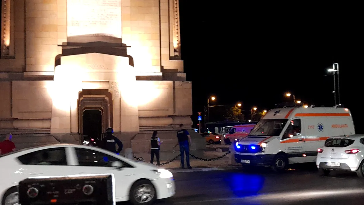 Incident la Arcul de Triumf. Un bărbat amenință că își va da foc | FOTO, VIDEO