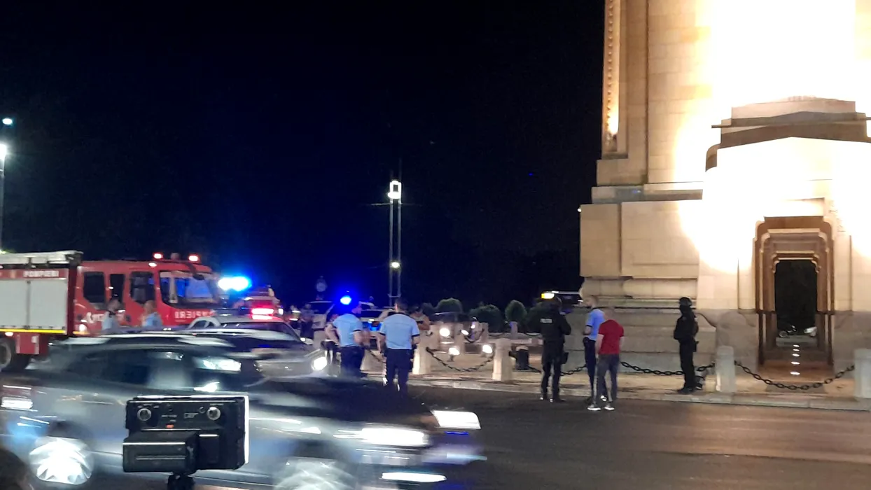Incident la Arcul de Triumf. Un bărbat amenință că își va da foc | FOTO, VIDEO