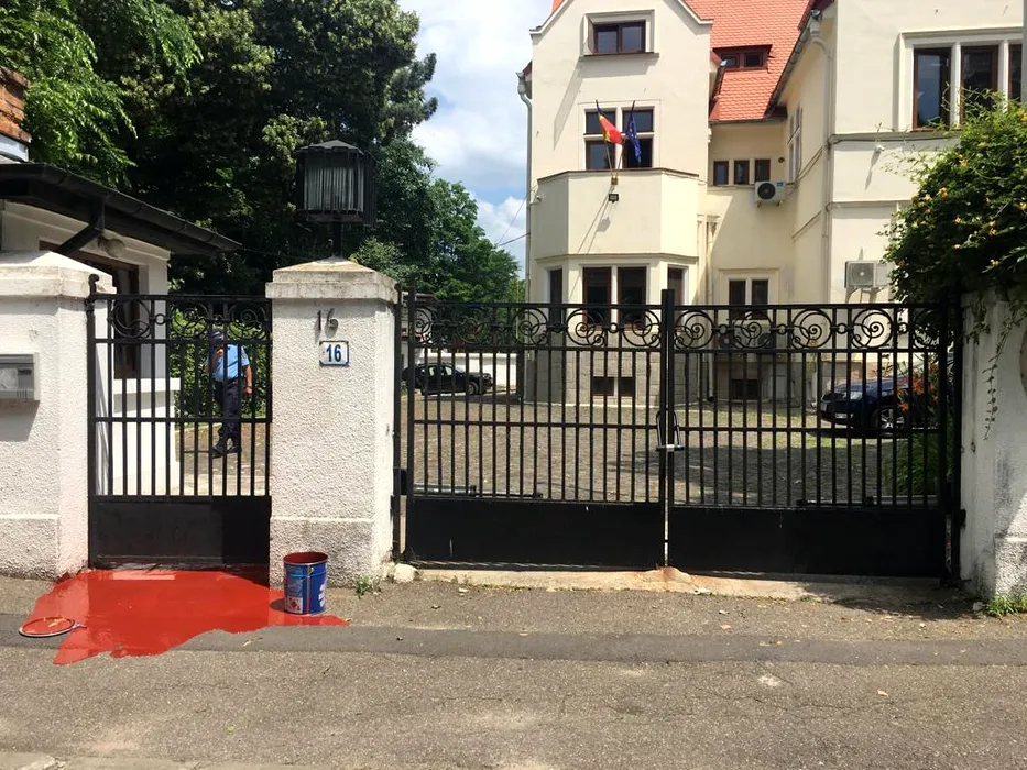 Incident la sediul Secției de anchetă a magistraților: Mai mulți protestatari au aruncat cu vopsea în clădire – VIDEO