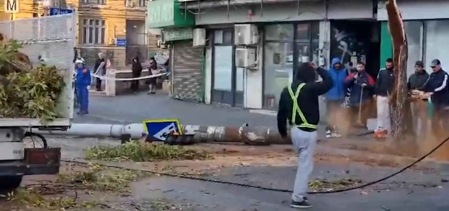 Incident periculos lângă Gara de Nord: Un stâlp a căzut peste o trecere de pietoni