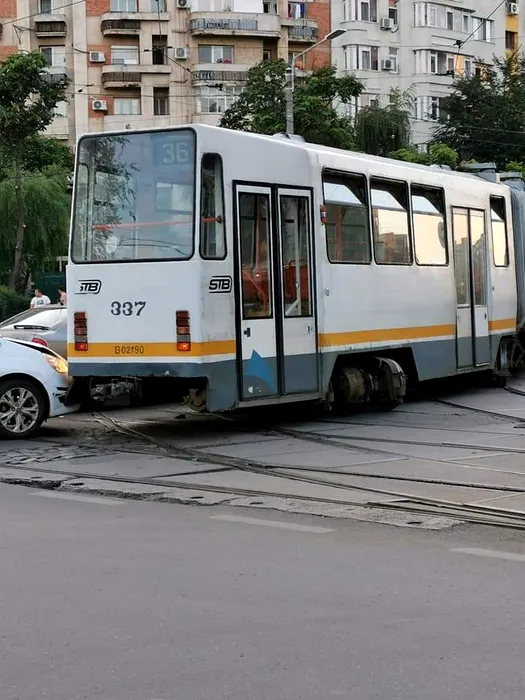 INCIDENTE. Un tramvai a deraiat în zona Diham din Capitală și a lovit două mașini, iar un șofer a blocat linia 41