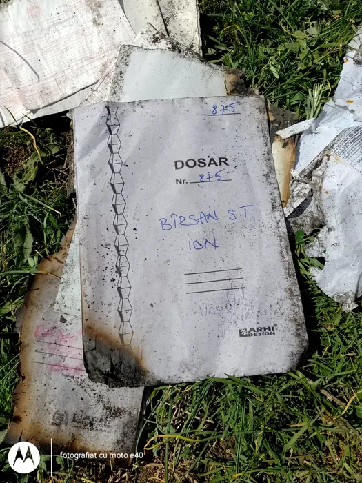 INCREDIBIL. Acte ale Primăriei Pleșoi, Dolj, care a luat foc luni, au fost găsite aruncate pe câmp joi