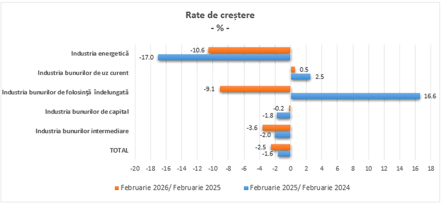 Industria românească a început anul în picaj. INS: Cifra de afaceri din industrie a scăzut în primele două luni din 2026 cu 3,3%