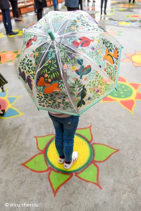 Soluția găsită de un preot din Cluj pentru ca toți cei care vin la biserică să respecte distanțarea socială. 150 de flori desenate pe asfalt alături de voluntari: „Așa cum spunea Constantin Noica, noi trebuie să trăim ca albinele pe pământ, nu ca muștele” / Sursă FOTO: Nicu Cherciu - Facebook