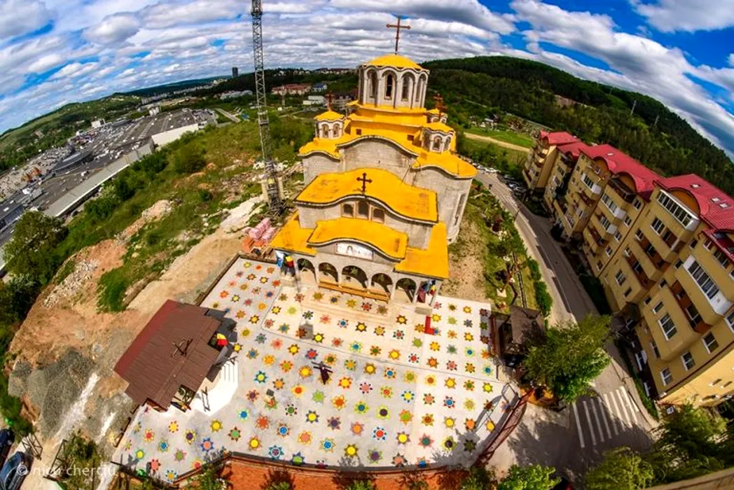 Soluția găsită de un preot din Cluj pentru ca toți cei care vin la biserică să respecte distanțarea socială. 150 de flori desenate pe asfalt alături de voluntari: „Așa cum spunea Constantin Noica, noi trebuie să trăim ca albinele pe pământ, nu ca muștele” / Sursă FOTO: Nicu Cherciu - Facebook