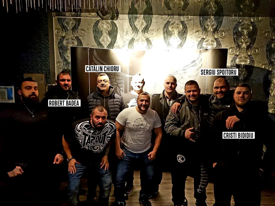 Robert Badea, alături de Cătălin Chioru și Sergiu Spoitoru, doi traficanți de droguri cunoscuți în București. Lângă ei se mai află, între alții, Cristi Bididiu, șeful bodyguarzilor de la BOA