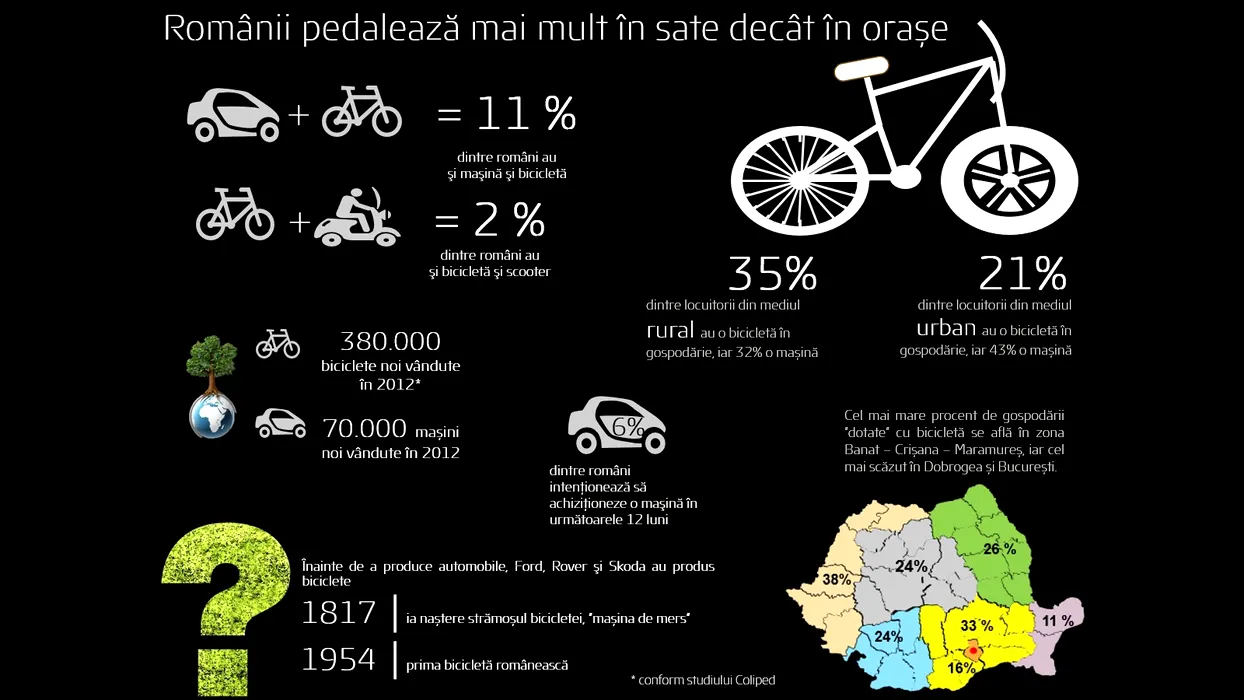INFOGRAFIC. Unde sunt întâlniți românii care pedalează cel mai mult