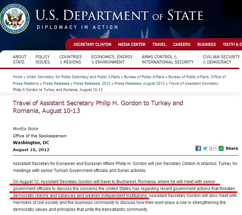 „ÎNGRIJORATĂ de recentele acțiuni GUVERNAMENTALE”, Administrația Obama trimite duminică la București UN EMISAR SPECIAL