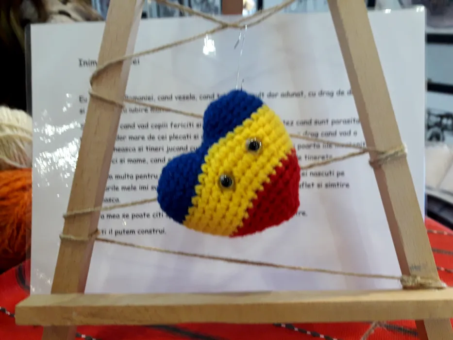 INIMA ROMÂNIEI croșetată cu fir de acril, TRICOLOR: Când veselă, când tristă, cu mult dor adunat, cu drag de DATINI și OBICEIURI