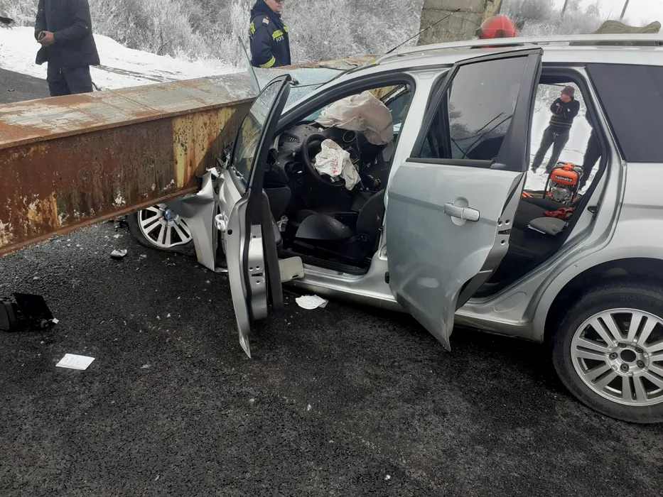 Intervenție de urgență pe DN 6 | Lovit de un camion, un LIMITATOR de înălțime a căzut peste un autoturism: „Una dintre victime a decedat” (VIDEO)