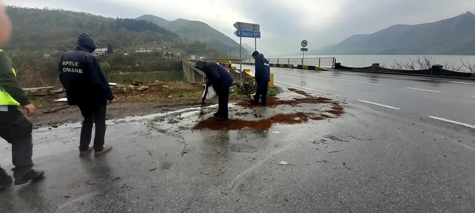Intervenție de urgență pe Dunăre, în zona viaductului Bahna. Poluare cu motorină de la microbuzul căzut în Dunăre