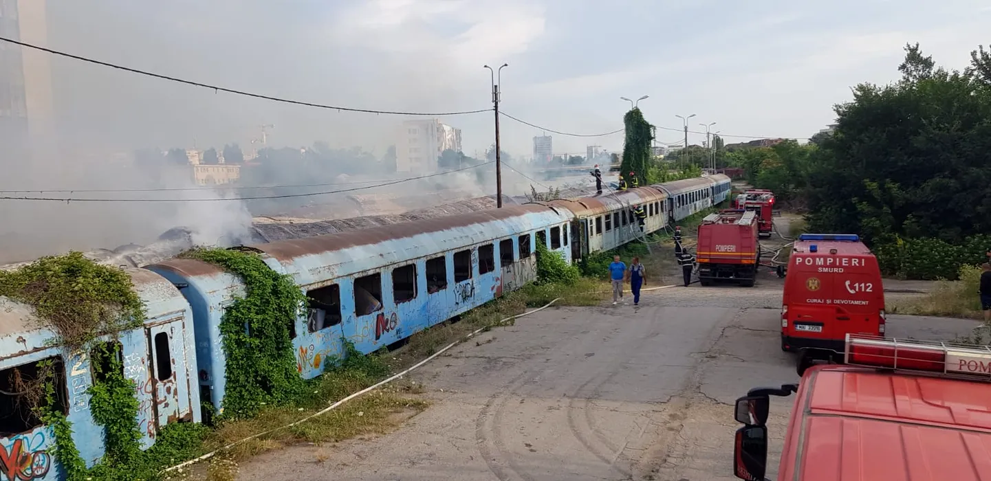 Intervenție dificilă a pompierilor: Un incendiu violent a izbucnit în Capitală, la depoul CFR (VIDEO)